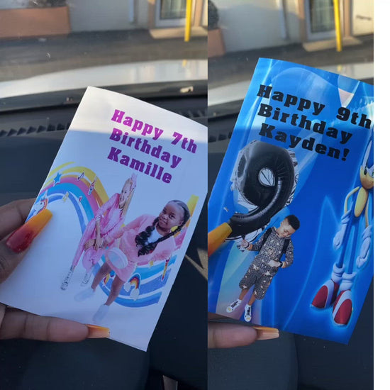 Example : I want the cover to say Happy 4th Birthday Joy with her picture and the middle to say May all your wishes come true with a picture of Jojo Siwa and the back to have her picture and Jojo Siwa